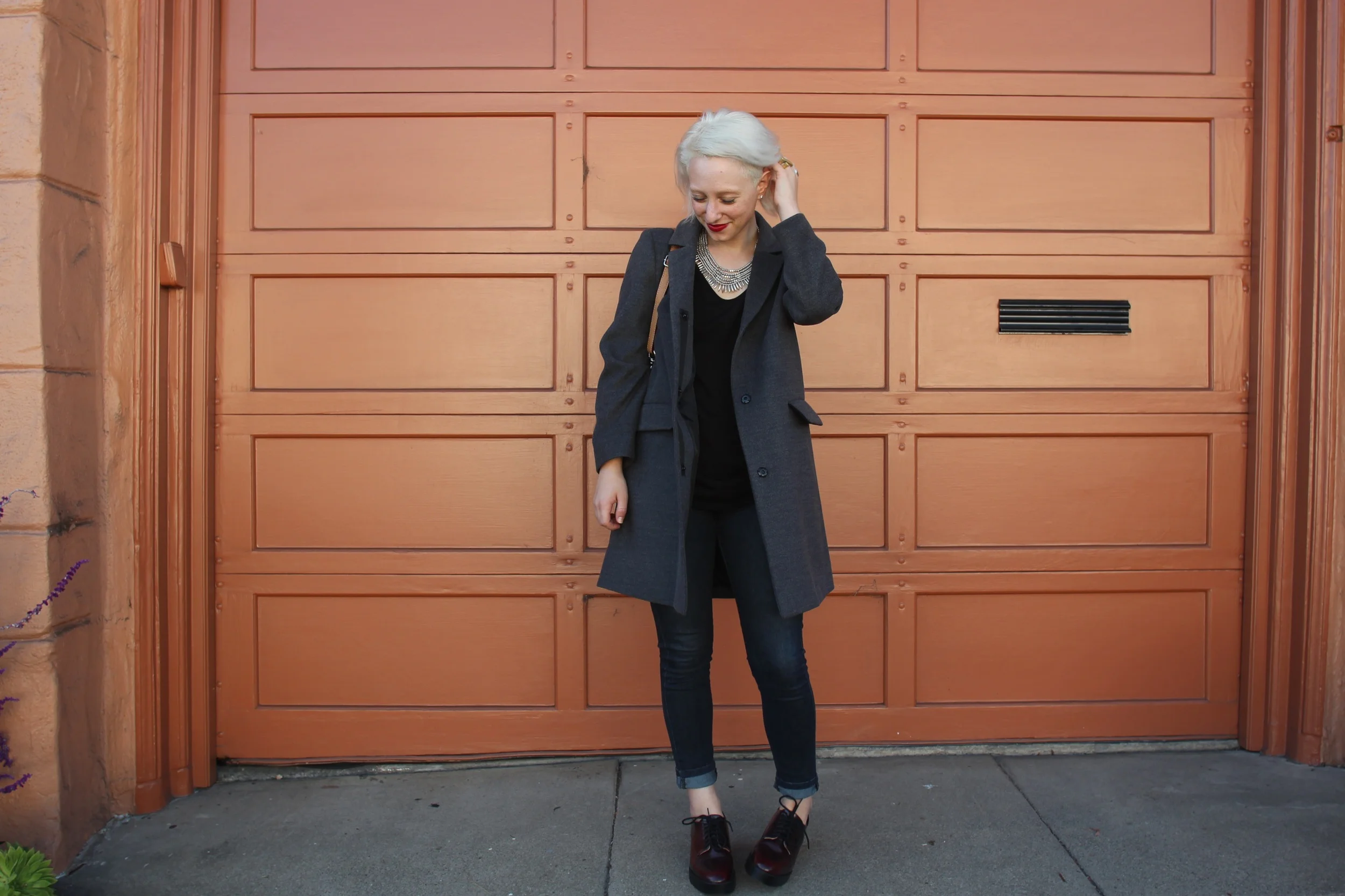 Coat: Topshop, Top: Helmut, Denim: James Jeans "Twiggy", Shoes: Zara, Backpack: Rebecca Minkoff, Necklace: Zad